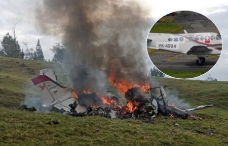 La aeronave, identificada como un Cessna tipo 6-90 con matrícula HK4684, había declarado emergencia mientras realizaba el trayecto entre Montería y Medellín. El trágico suceso tuvo lugar en el sector de “El Roble” en Yarumal, a unos 15 minutos del casco urbano, de acuerdo con el relato del comandante de la Policía de Antioquia, coronel Carlos Andrés Martínez.